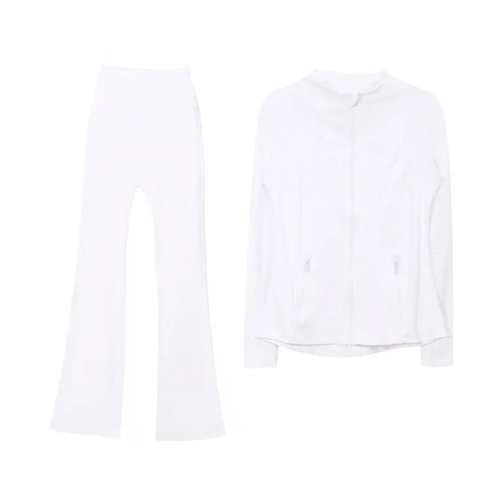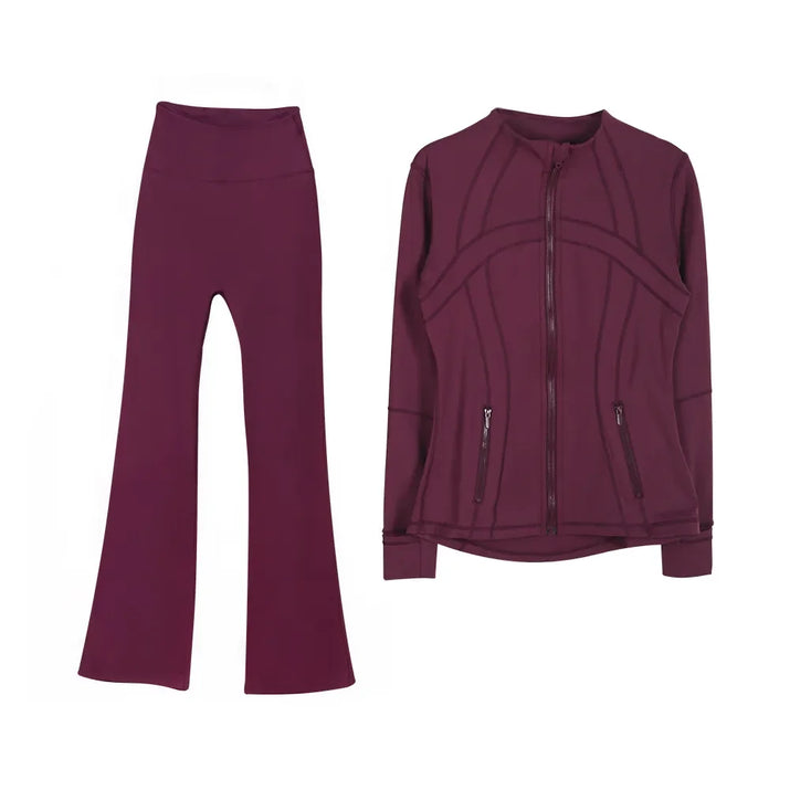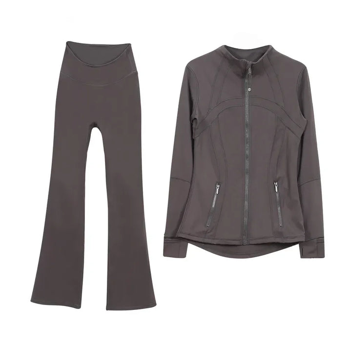 Dieses elegante, zweiteilige Outfit vereint Stil und Funktionalität und ist perfekt für aktive Frauen, die Komfort und Eleganz schätzen – ob beim Yoga oder in sozialen Anlässen.