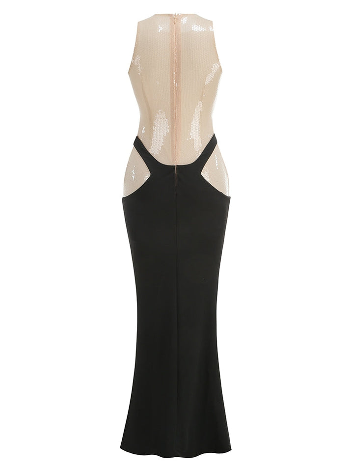 Funkelndes Abendkleid mit Kontrastfarben